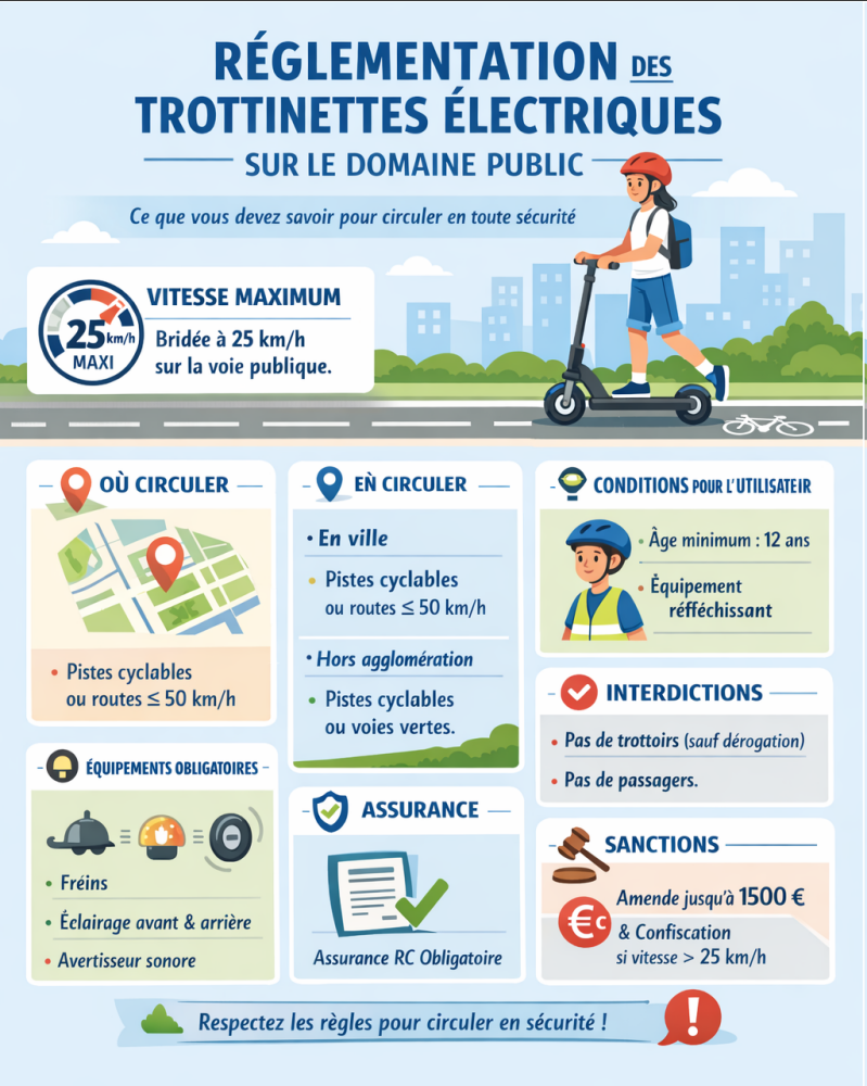 Un EDPM = un engin électrique individuel, limité à 25 km/h, encadré par la réglementation routière.